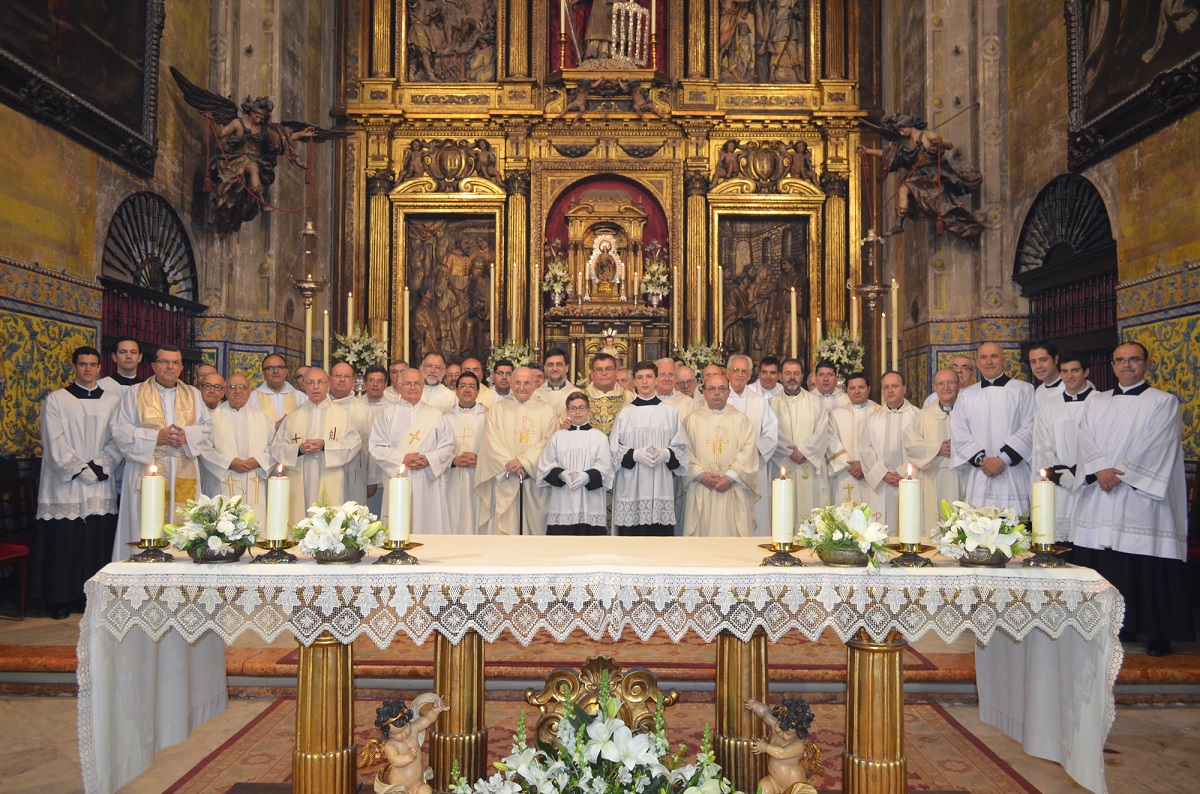 A la Eucaristía asistió numerosísimo público y también un importante número de sacerdotes que concelebraron con D. Francisco, mostrándose así todo el cariño que ha ido regalando durante estos veinticinco años de sacerdocio. Participó además en la celebración el cuerpo de acólitos de nuestra Hermandad.