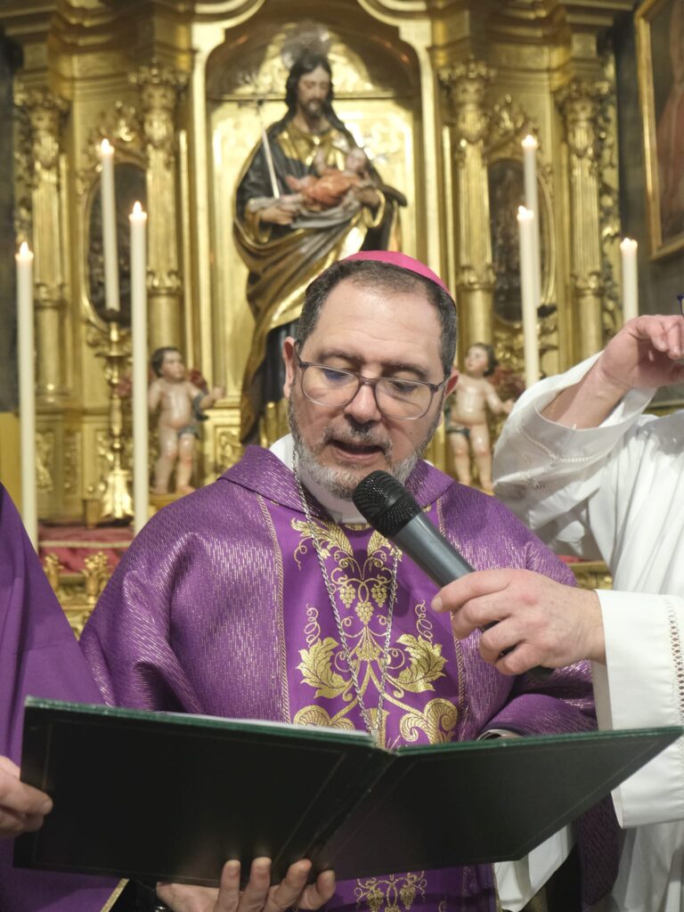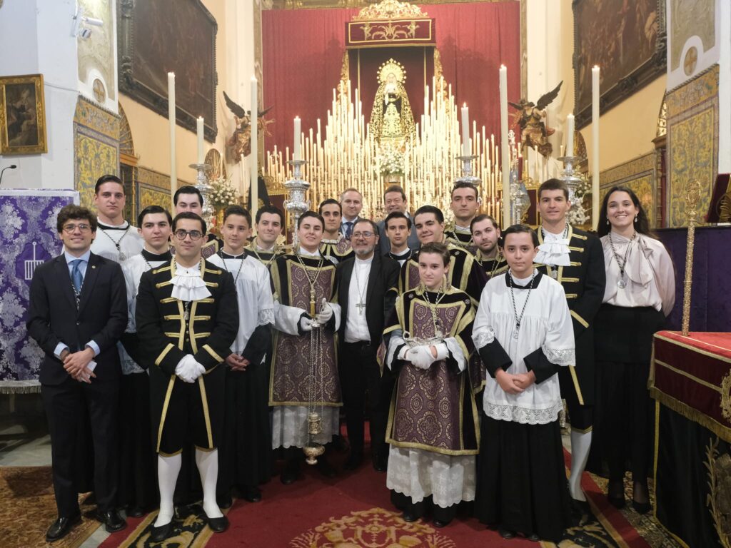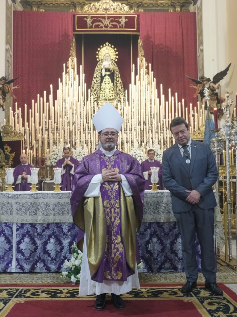 El domingo 22 de febrero, primer domingo de Cuaresma, nos reunimos en torno a la Función Principal de Instituto, que esta vez estuvo presidida por el obispo auxiliar de Madrid, el Excmo. y Rvdmo. Sr. D. Vicente Martín Muñoz. Su homilía destacó por la actualidad y compromiso de su mensaje, animándonos a practicar el “sacramento de la impotencia compartida”, ese que nos lleva a acompañar a los hermanos en las situaciones difíciles de la vida tal y como reza el lema de nuestra hermandad.